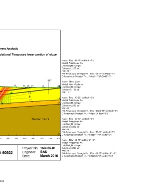 Name: TQs 150-17° (A-Bed6°-7°) Model: Anisotropic Fn. Unit Weight: 120 pcf Cohesion': 225 psf Phi-Anisotropic Strength Fn.: TQs 150-17° (A-Bed6°-7°) C-Anisotropic Strength Fn.: 150psf-17° (A-Bed6°-7°) Name: Shear Layer Model: Mohr-Coulomb Unit Weight: 120 pcf Cohesion': 150 psf Name: Tmc 100-25° (A-Bed0°-5°) Model: Anisotropic Fn. Unit Weight: 120 pcf Cohesion': 200 psf Phi-Anisotropic Strength Fn.: Tmc 100psf-25° (A-Bed0°-5°) C-Anisotropic Strength Fn.: 100 psf (A-Bed0°-5°) Name: Tmc 150-17° (A-Bed0°-5°) Model: Anisotropic Fn. Unit Weight: 120 p