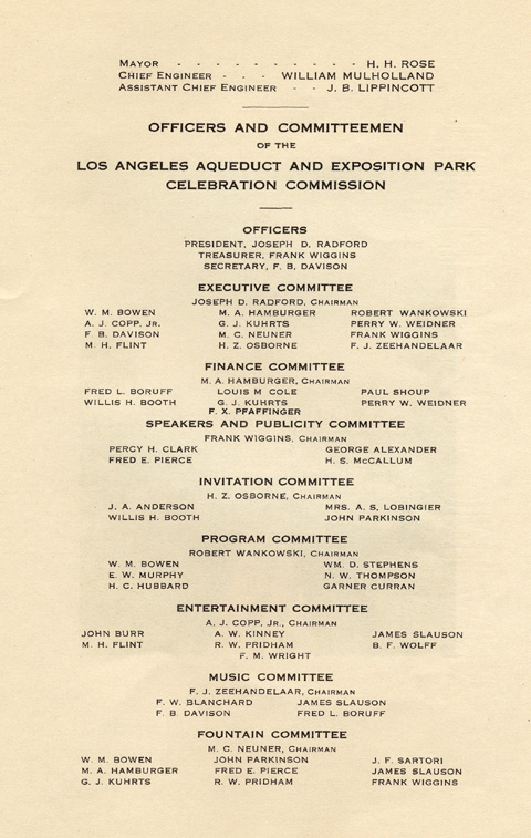 came to the San Fernando Valley to see the first water from the Owens Valley complete the journey to Los Angeles. The city's hero Mulholland presided over the ceremony and