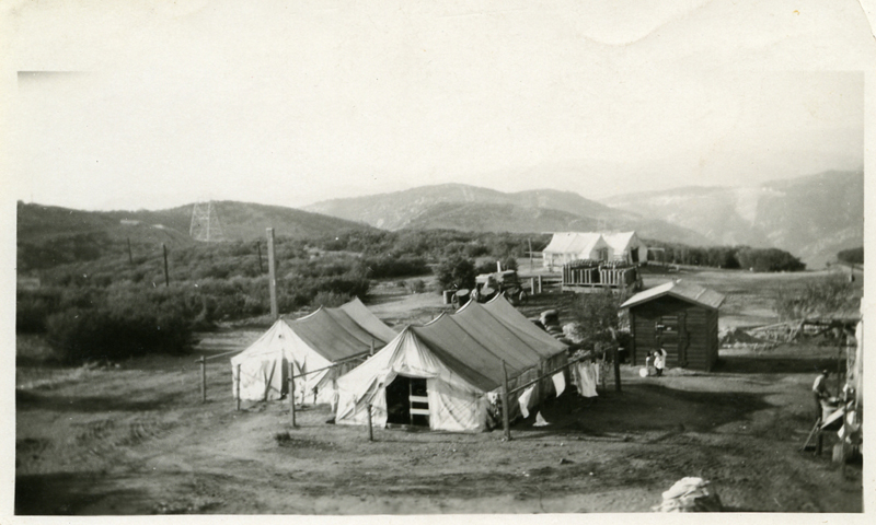 Construction camp working on the Pan American Pipeline along the Ridge Route, ~1925.