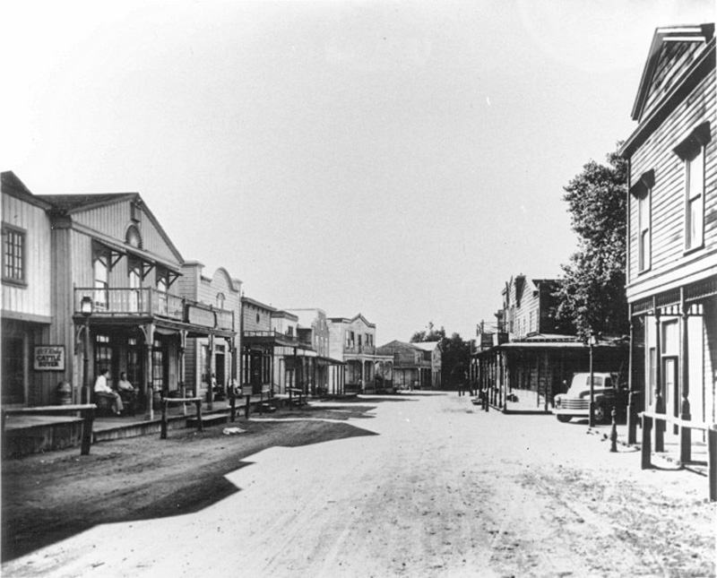 Main street at Melody Ranch before the 1962 fire (probably 1950s).
