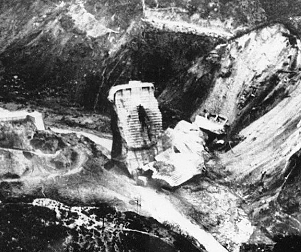 Photo, looking north, shows what was left of the St. Francis Dam shortly after it failed on March 12, 1928. | ||