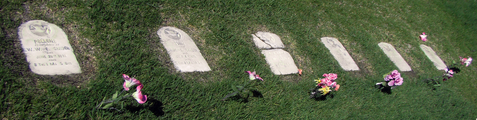 The children were from two families. The grave markers show that four were the children of a D.A. Baum and two were the children of W.W.E. Snider.
