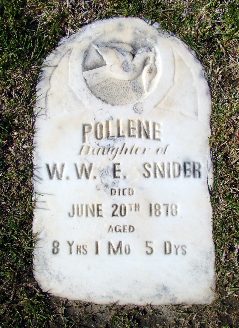 First to die was 8-year-old Pollene Snider on June 20, 1878, followed by her brother John, age 5, on the 4th of July.