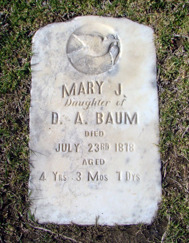 Mary J. Baum — 16 April 1874, d. 23 July 1878