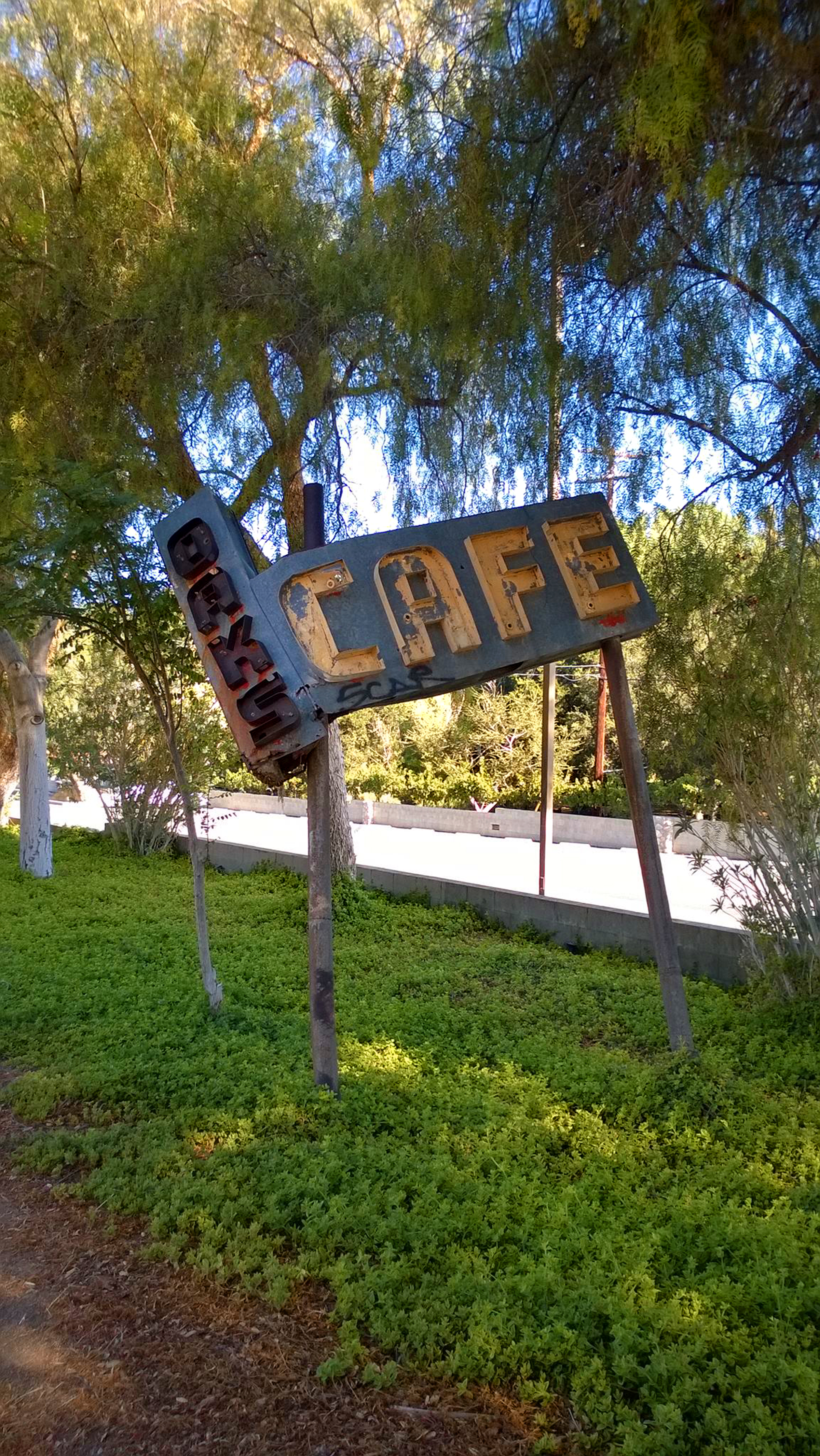 The Oaks Garage was a popular stop for day trippers travelling from Los Angeles to Palmdale or Lancaster, perhaps enjoying side trips to attractions like Vasquez Rocks and the Red Rover gold mine. The Dodrills also had a half ownership in a gold mine near Vasquez Rocks. It was also a place to stop for refreshments and supplies for longer trips to the Sierra Nevada Mountains. On the front of the Oaks Garage, they painted the distances to destinations of interest to motorists travelling along this route, namely Palmdale, Lancaster, Mojave, Lebec, Bakersfield, Saugus, and Los Angeles.