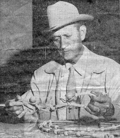 1958: Bakersfield Californian photo of Bob Addington, onetime wrangler on the Tejon Ranch. Addington discovered outlaw Tiburcio Vasquez's spurs in the 1930s while cowboying on the ranch. | ||