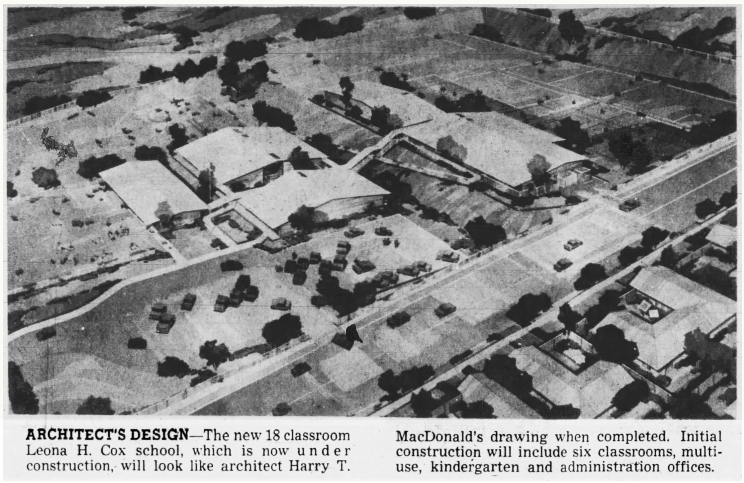 Initially, the building will consist of six class rooms, a multi-use room, two kindergartens, and administrative offices, according to Dr. Ralph R. Bell, district superintendent.