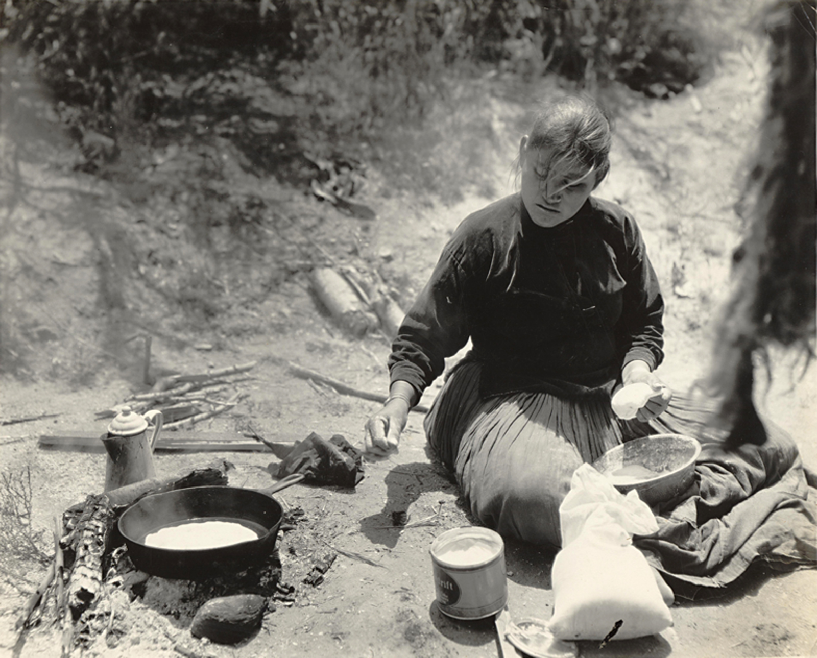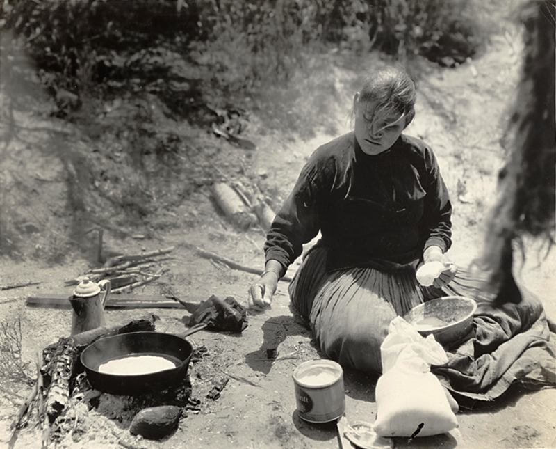 Navajo woman cooking at the Harry Carey Ranch Store & Trading Post, which was located on the west side of San Francisquito Canyon Road in Saugus,