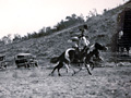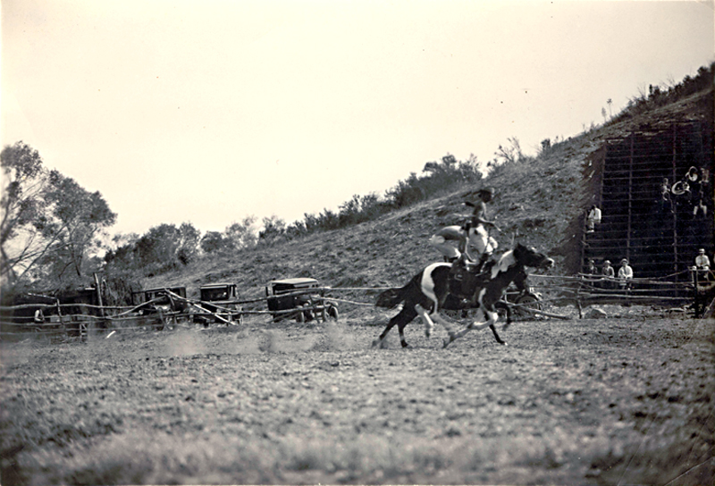The Navajo Indians who worked at the Harry Carey Ranch staged riding demonstrations (among other things) for the tourists. Here, two Navajo men