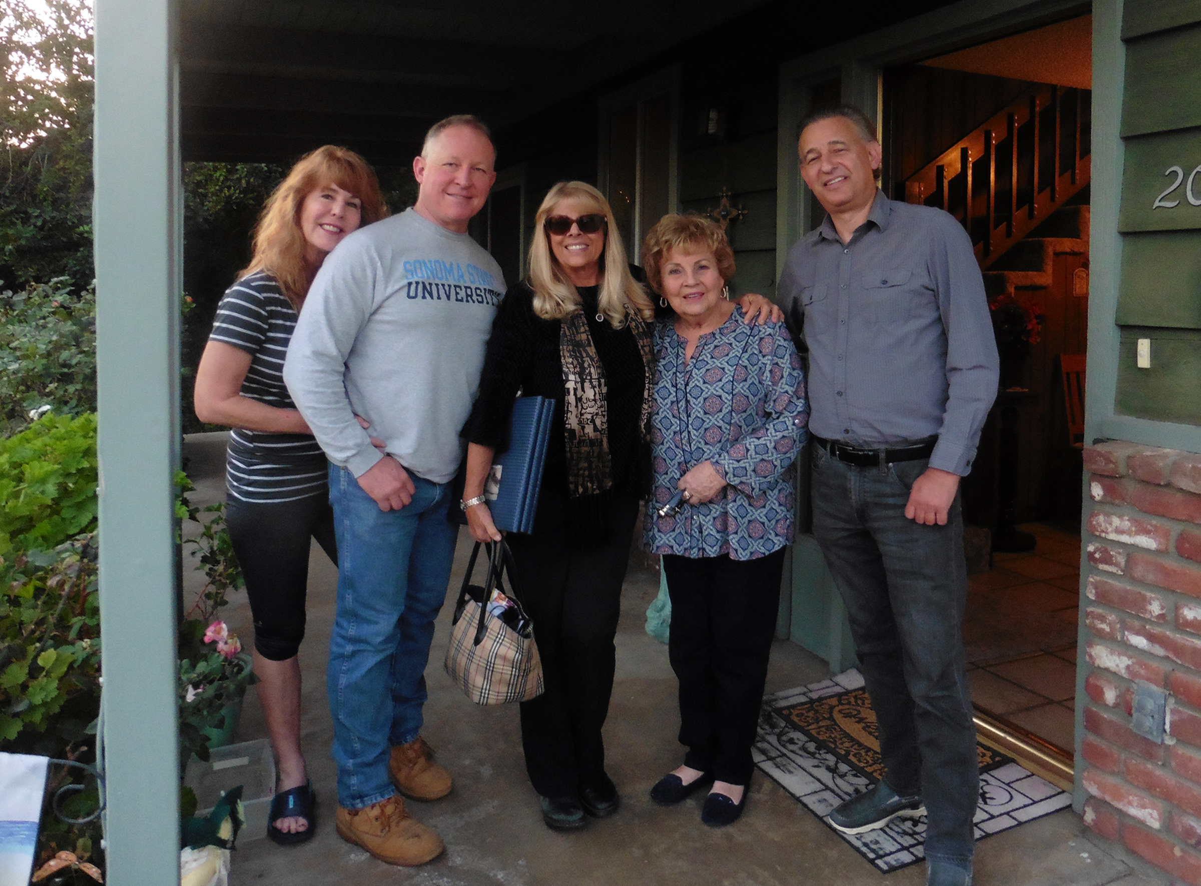 Jan. 17, 2018, Frances Clausen's home in Camarillo (From Left): Kathleen "Kandi" Ann Miranda, Fran's daughter-in-law; Frank A. Miranda Jr., Fran's son; Dianne Erskine-Hellrigel (the writer); Frances Guadagno Clausen (daughter of Alvina Gottardi Guadagno); Dr. Alan Pollack, SCV Historical Society president. Photo: Eva Gritz/SCVTV. Click to enlarge.