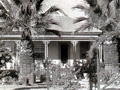 One way to estimate the date is to consider the size of the two palm trees in front of the house. The were knee-high to a tadpole when Nickel planted them in the 1890s. Compare their height in the 2014 photograph. In the black-and-white photo they're somewhere in between.