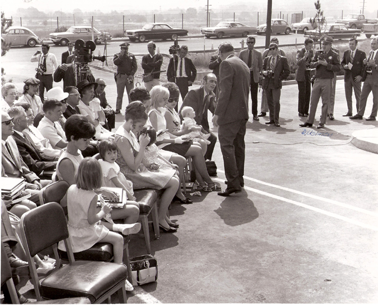 Photograph taken June 5, 1970, at the "Newhall Incident" Memorial Wall dedication at the Highway Patrol Office (located on the frontage road west of I5 and south of Lyons Ave).