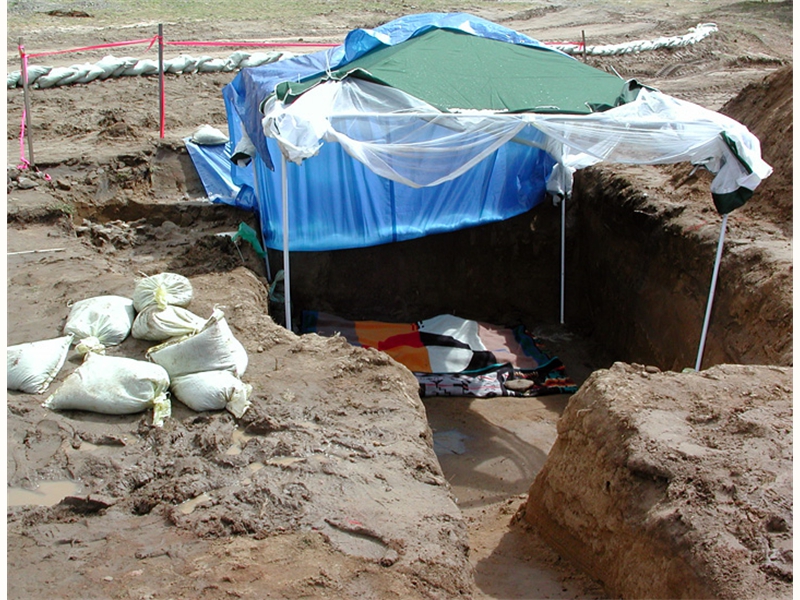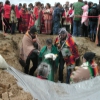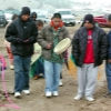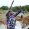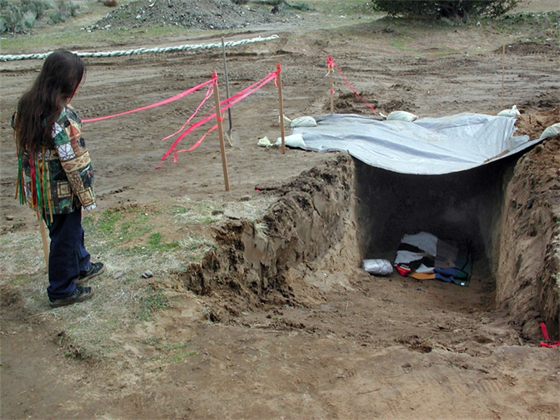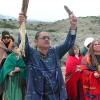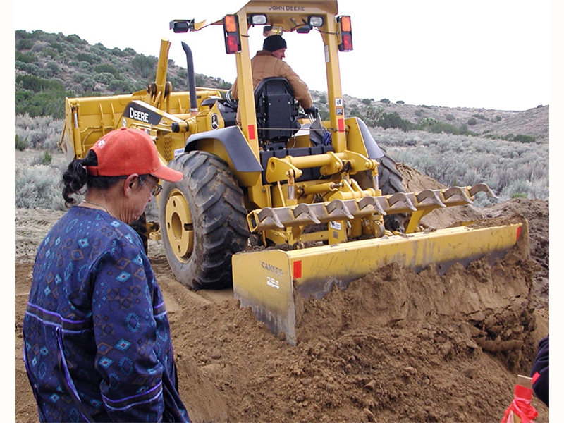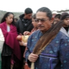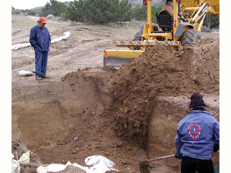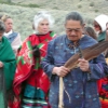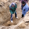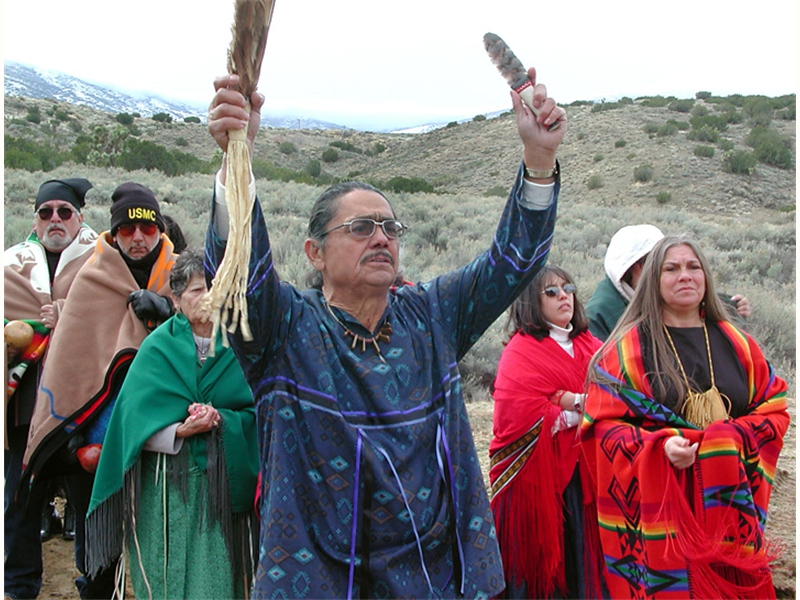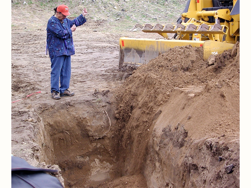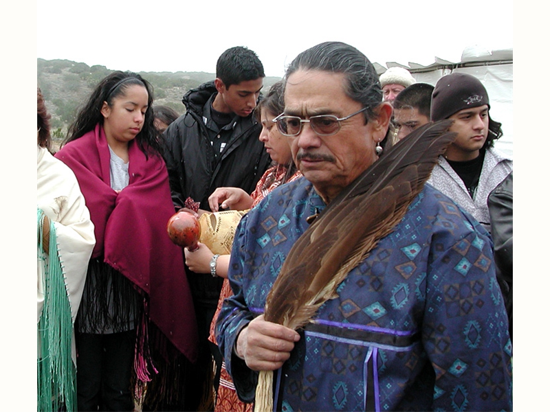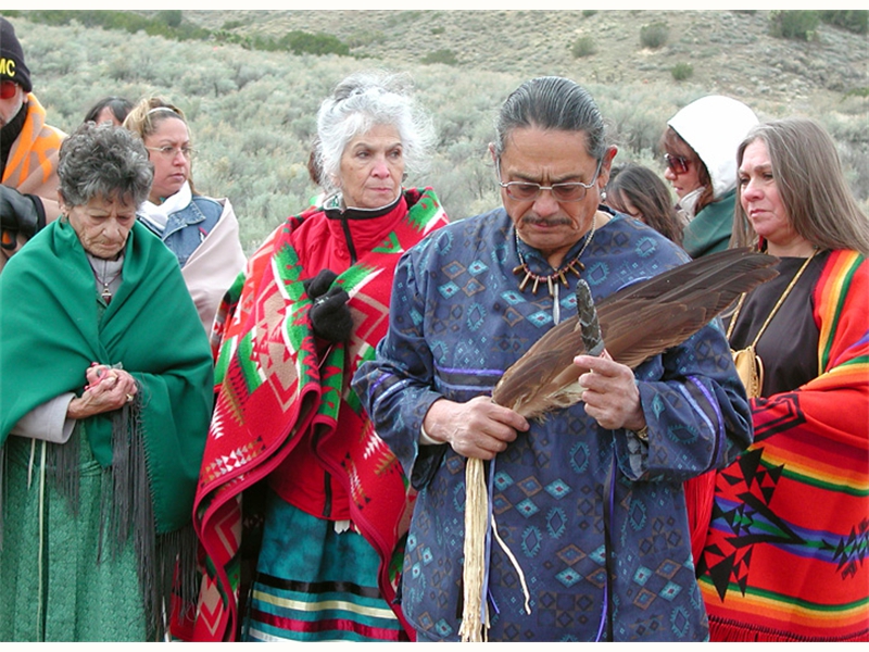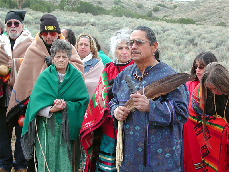 • From left: SFBMI elder Petra Valenzuela Felkins, elder Doris Martinez Smith, Chairman John Valenzuela and Vice Chairwoman Donna Smith Yocum (daughter of Doris) pray at one of the gravesites.