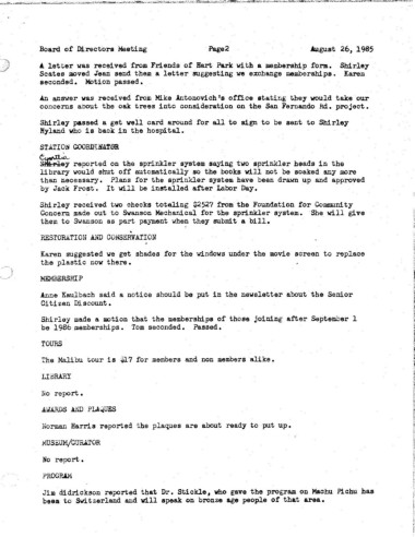 Boa.rd of Directors Meeting Page2 August 26, 1985