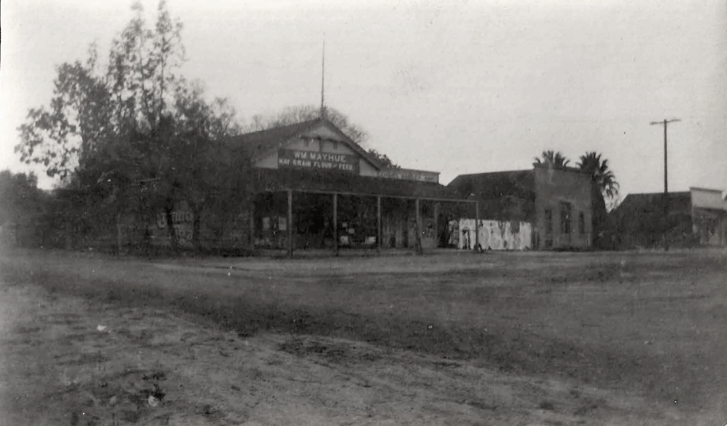It's rather rare to see the name William Mayhue on this grocery and feed store. The name dates the photograph to the five-year period from 1914-1919.