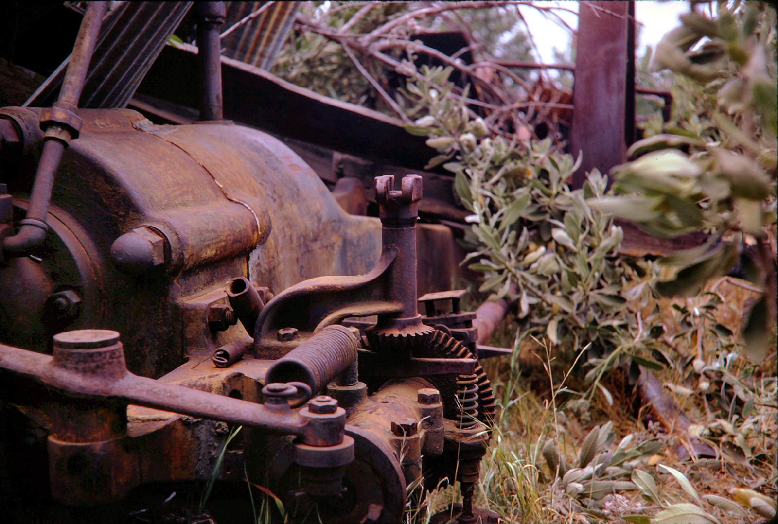 The two original jackline plants in Pico Canyon were mostly intact in 1974 when I was there. A brush fire had burned all of the wooden parts and the buildings, but the tin lay where it had fallen after the wood framework burned. The big iron and steel parts remained.