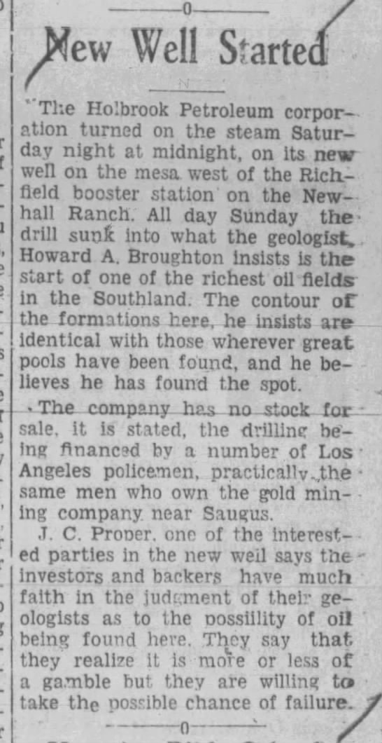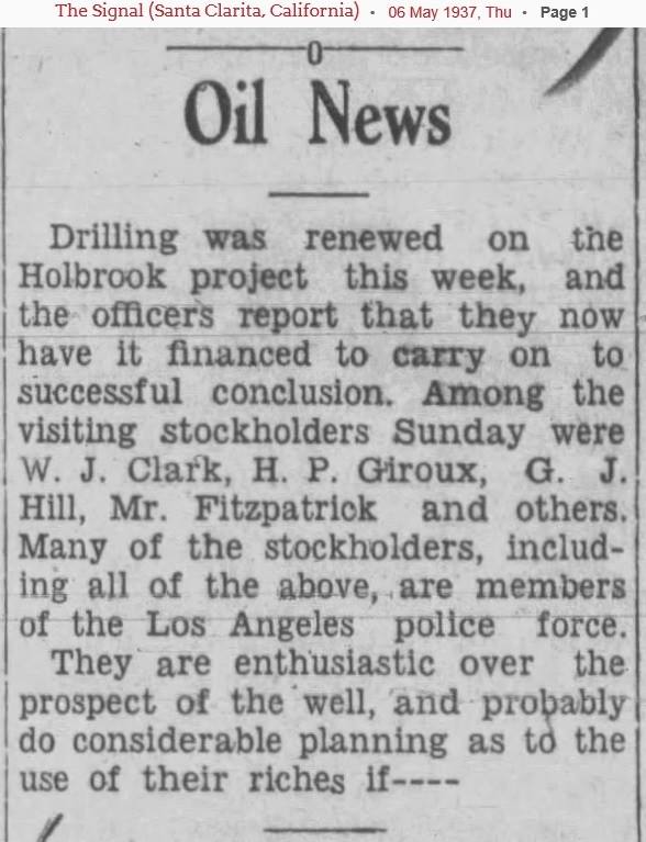 Born in Texas in 1901, Clark came to California by way of New Mexico and joined LAPD when he was 23. Together with some other L.A. policemen, he pursued his entrepreneurial dreams on the side. In the early 1930s, Clark came to the Newhall-Saugus area to try his luck at gold prospecting and oil drilling. His wells were dusters, but his placer mining exploits over the years netted him $35,000 that he reportedly invested in good Bouquet Canyon bottomland.