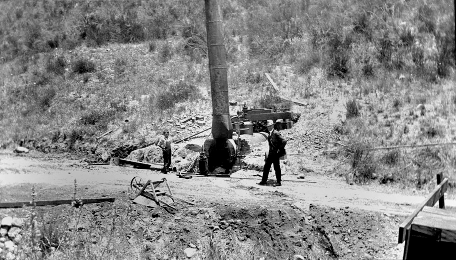 According to local oil historian Stan Walker, the boiler would have been used to provide steam for a steam engine that provided the power to drill the well.