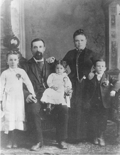 Reynier Family, c. 1883. Parents Joseph & Josephine; children (from left) Josephine, Hortence, Joseph P.E. | ||