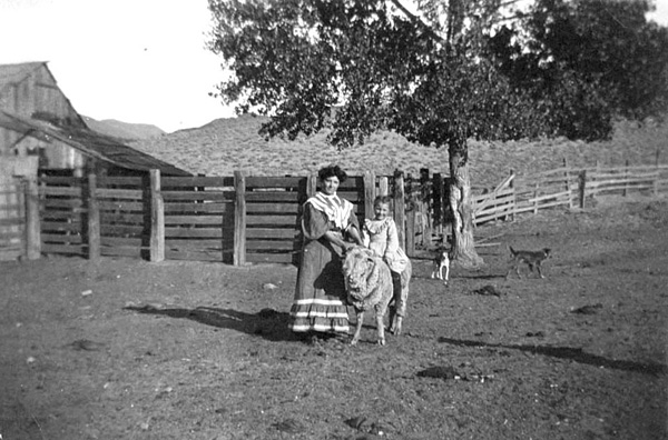 Della & Euginia Reynier on the family homestead in Reynier Canyon, between Placerita and Sand canyons, c. 1908. | ||