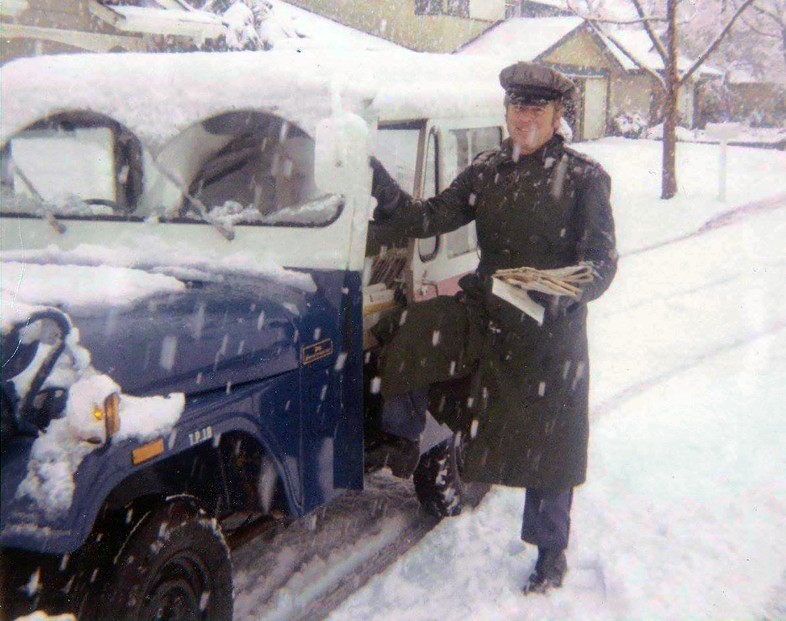January 4, 1974Charles Kenneth Stahl Jr. delivers mail (probably in Canyon Country) on the second day of a two-day snowfall.