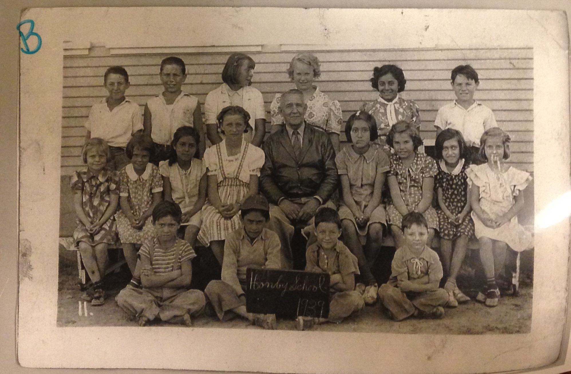 Image courtesy of Eleanor Fryer (née Eleanor Haddock), who attended Honby School from September 1935 until her 8th grade graduation in 1940. In this photo, she is in the middle row, to the (viewer's) immediate left of the teacher.