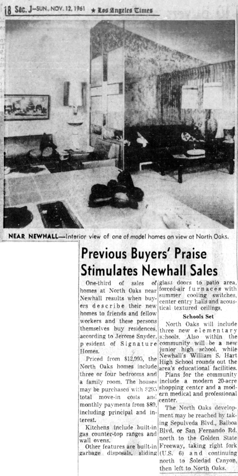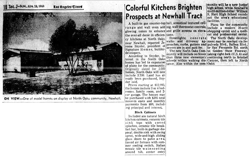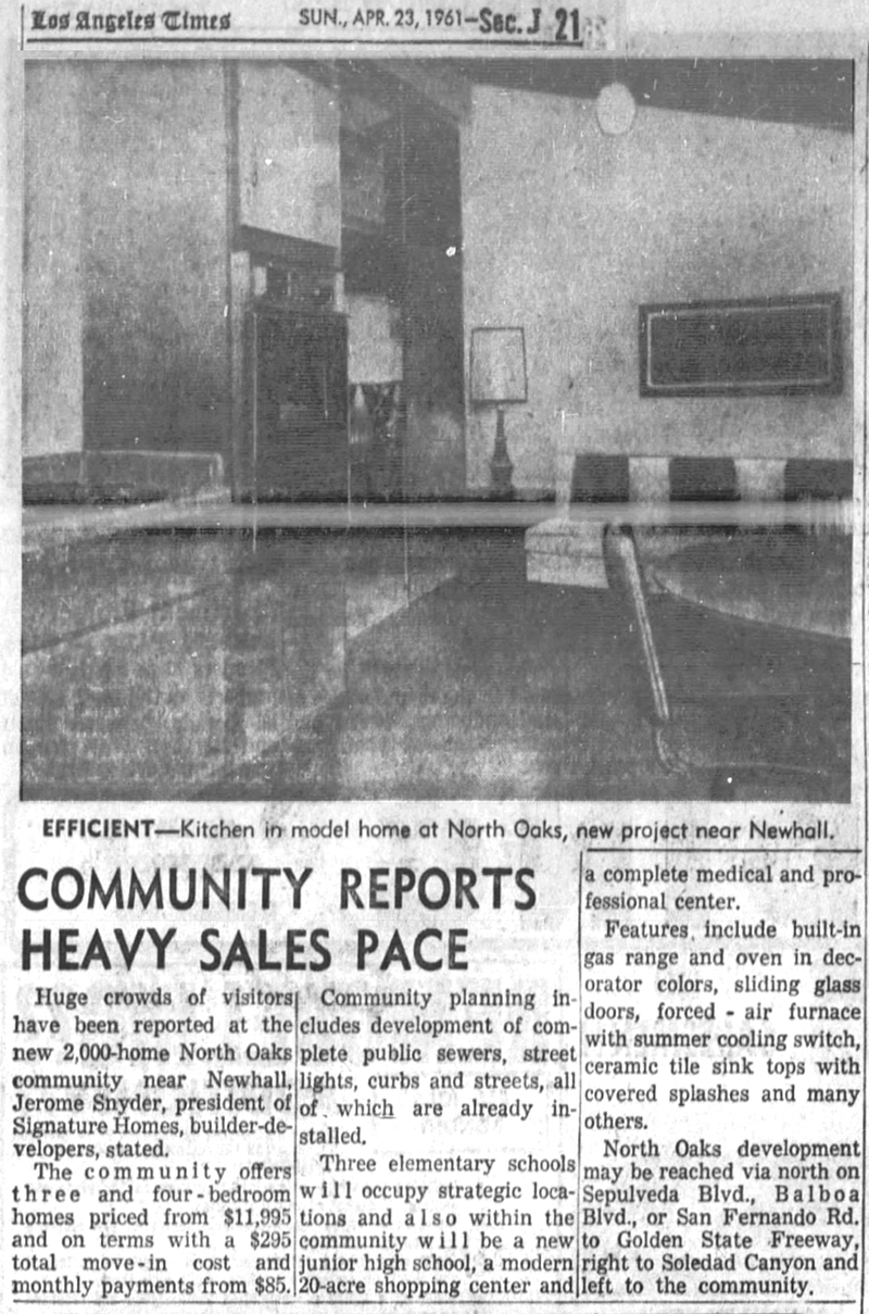 Although housing tracts weren't exactly a new idea in the Santa Clarita Valley — e.g., Bermite homes in the 1930s, Rancho Santa Clarita (Bonelli Tract) in the 1940s — North Oaks was the SCV's first large, master-planned subdivision and the first to style itself a "city."