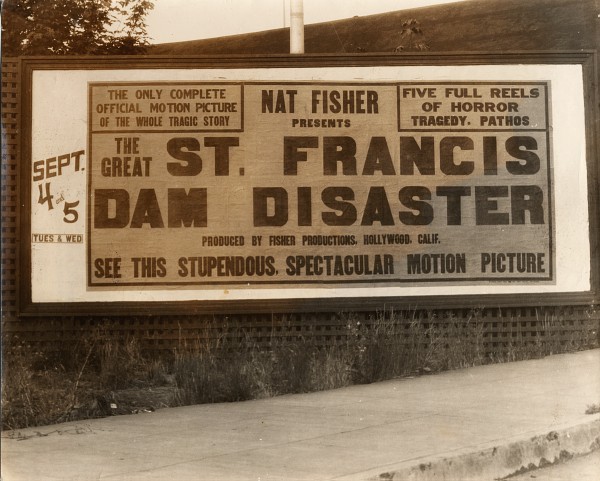 Billboard for an obscure 5-reel film about the St. Francis Dam Disaster by Nat Fisher, released in 1928. | ||