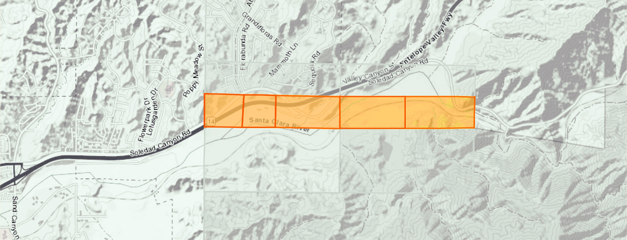 BLM records show Lang homesteaded two side-by-side, 160-acre tracts of land (technically, one measured 166 and 38/100 acres) stretching from the present 14 Freeway exit at Soledad/Shadow Pines eastward along the Santa Clara River and including the future