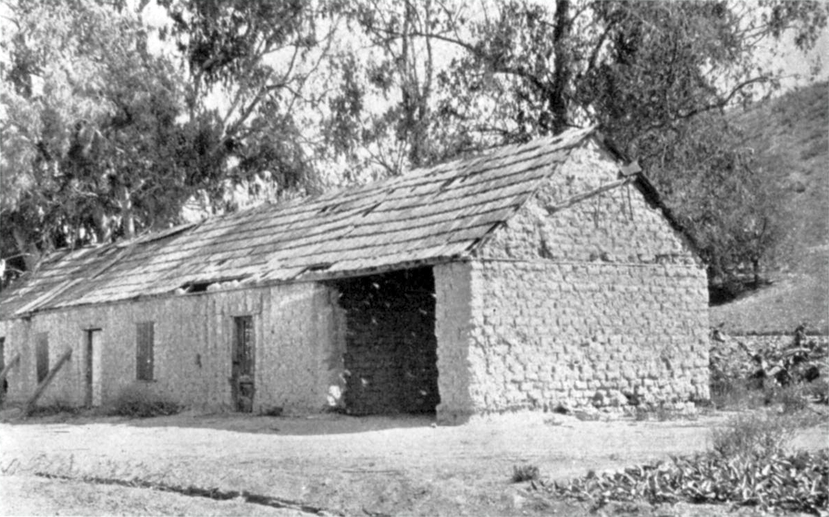 At least one house that Martin Ruiz erected is still standing, however [in 1929 — Ed.], a mile or two up "El Cañon del Buque," facing west, at a point where the cañon widens out into a little desert valley, hemmed in by low hills. It is a long, rambling building, with rough brown walls of adobe brick that have never been plastered. The east wall of the cañon ascends rather abruptly behind it, still wild, covered with sagebrush and greasewood and manzanita, out of which rises grotesquely the angular and unpoetic form of a modern frame house which looks down disdainfully from across the road upon the abandoned adobe.