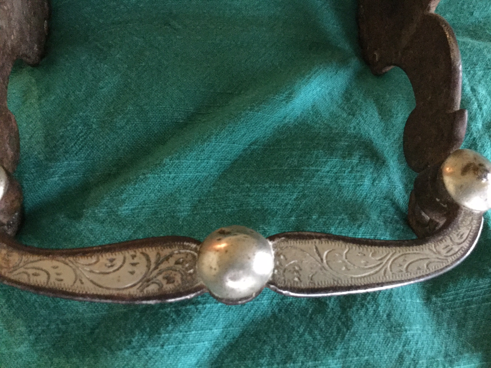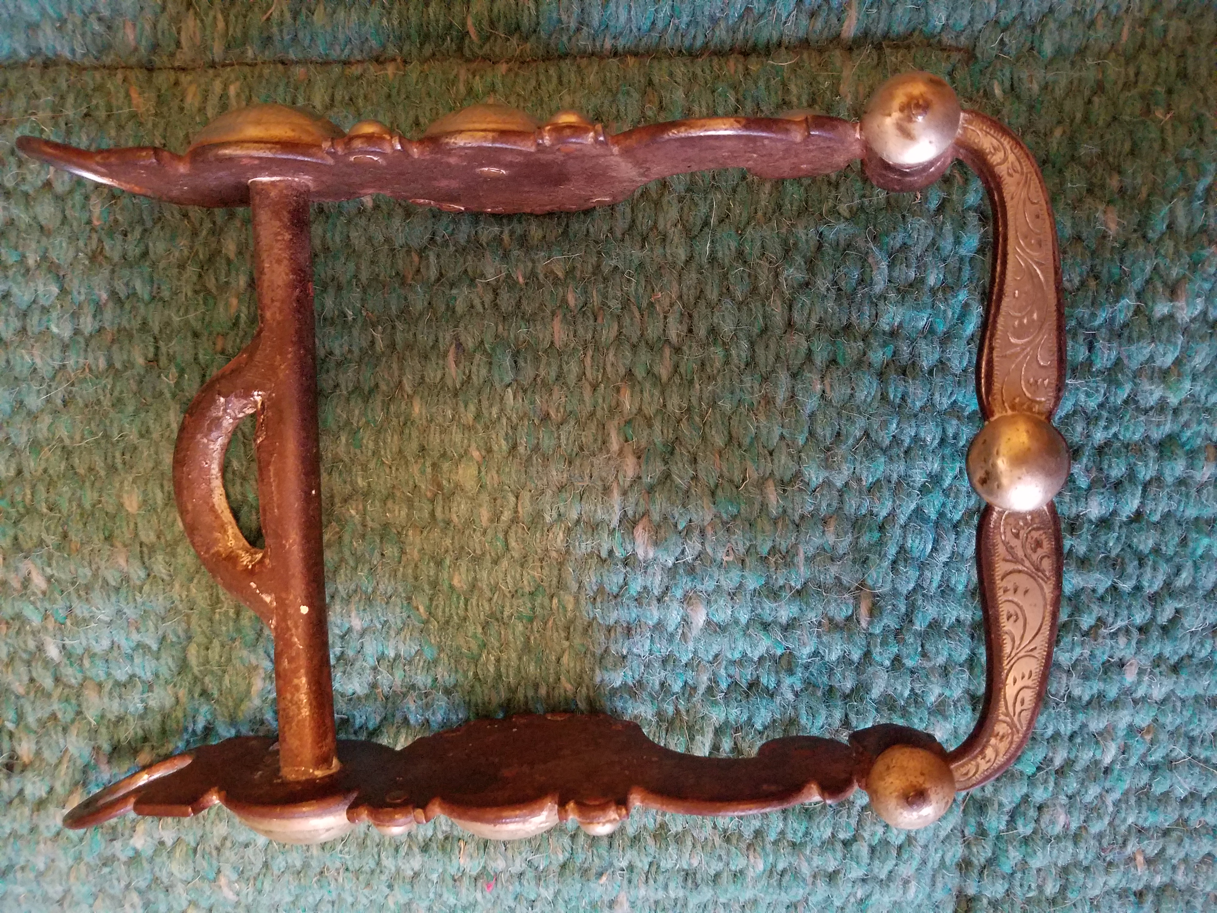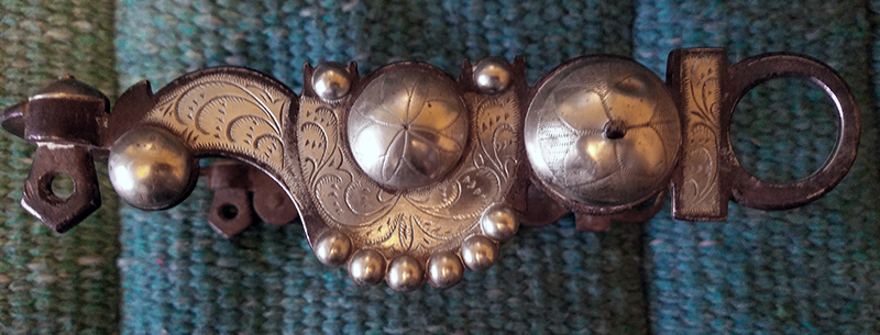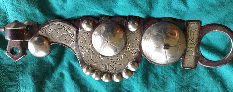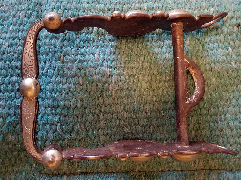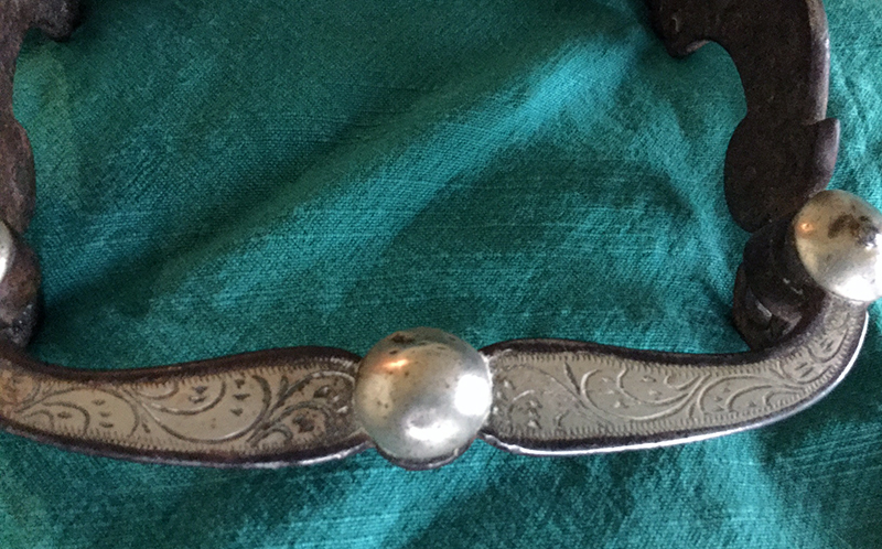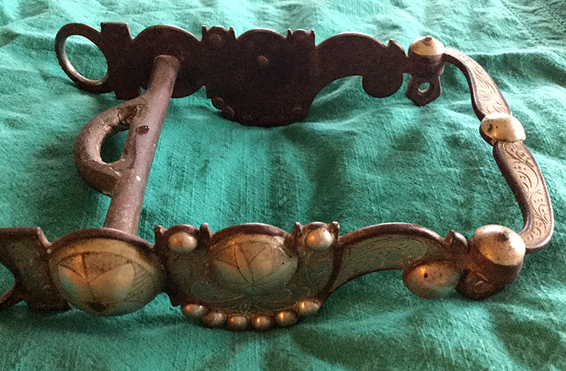 Hand-forged silver overlay curb bit salvaged from Melody Ranch after the wildfire of August 28,1962, that burned down Gene Autry's Western town.