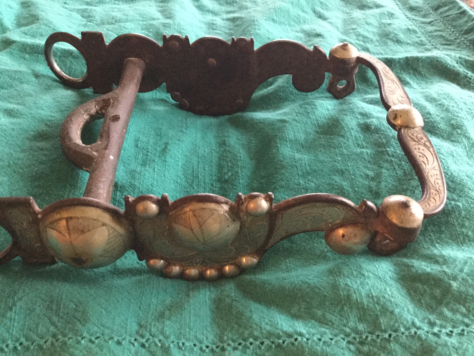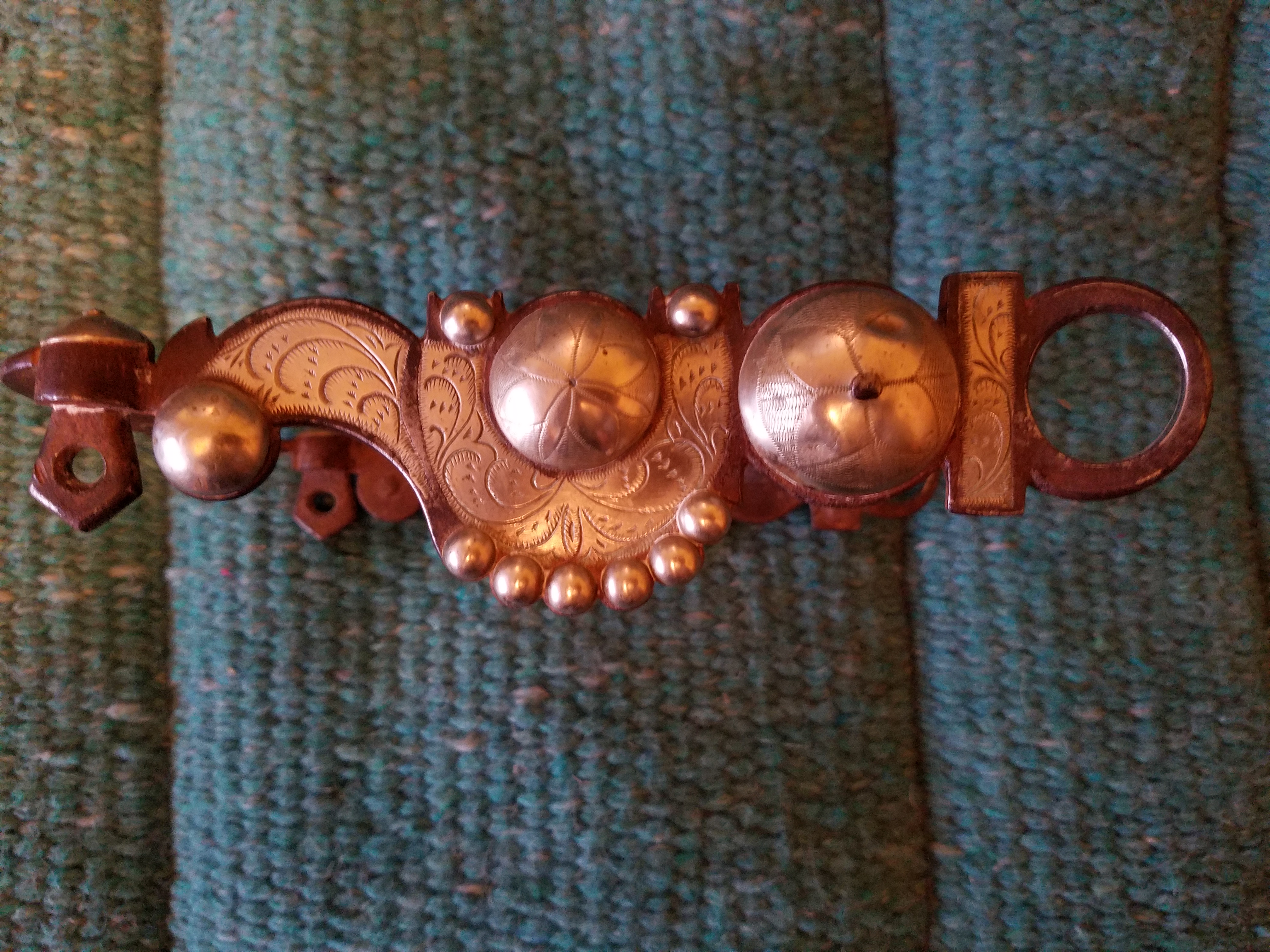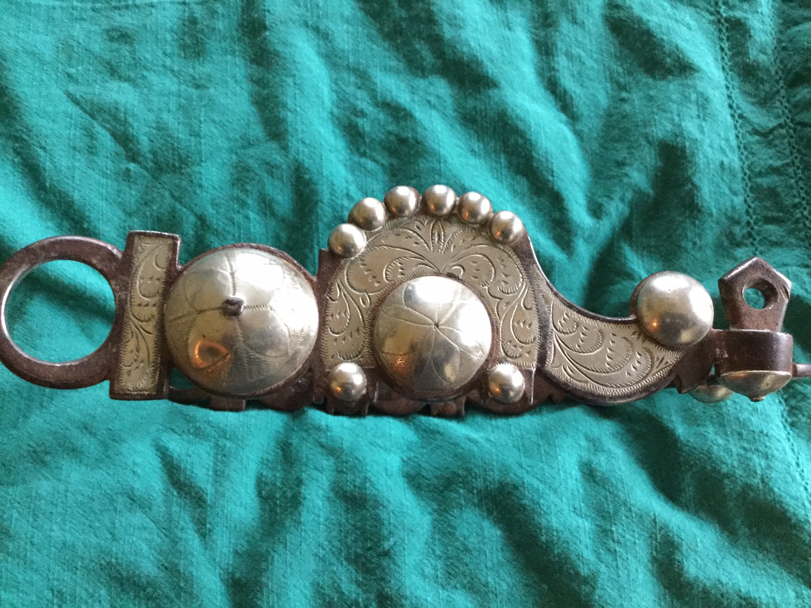 Hand-forged silver overlay curb bit salvaged from Melody Ranch after the wildfire of August 28,1962, that burned down Gene Autry's Western town.