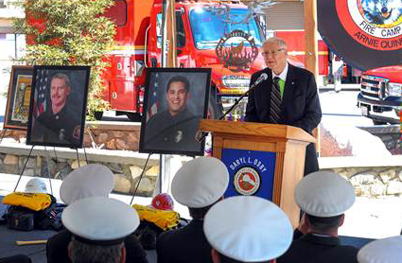 Several Los Angeles County Fire Department officials including Chief Daryl L. Osby met with Supervisor Michael D. Antonovich on Friday to honor the memory of Fire Captain Ted Hall and Fire Fighter Specialist Arnie Quinones, who lost their lives while fighting the fire.