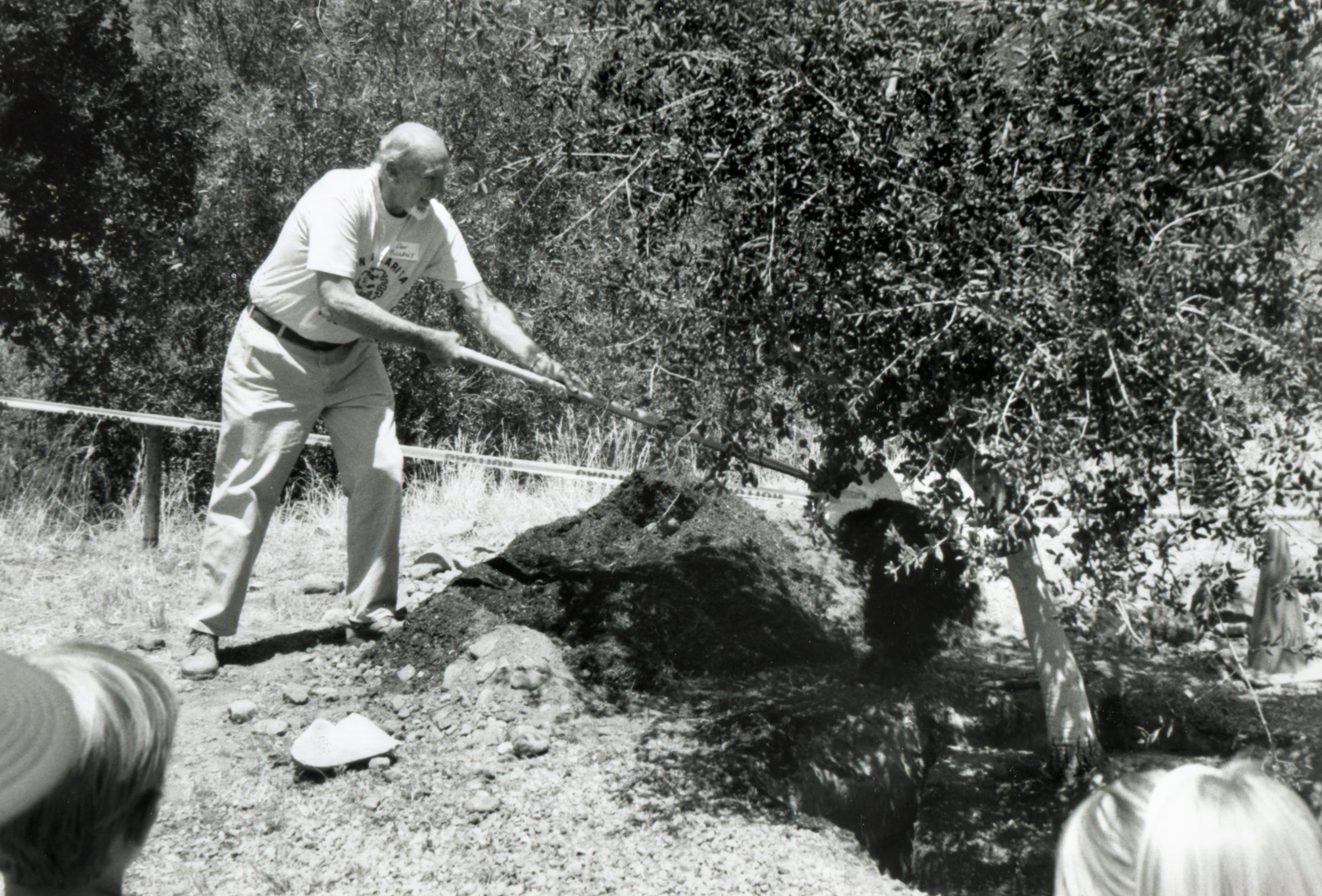 Don Mullally helps plant a tree during a public event in nearby Mentryville, circa 1996. Click to enlarge.