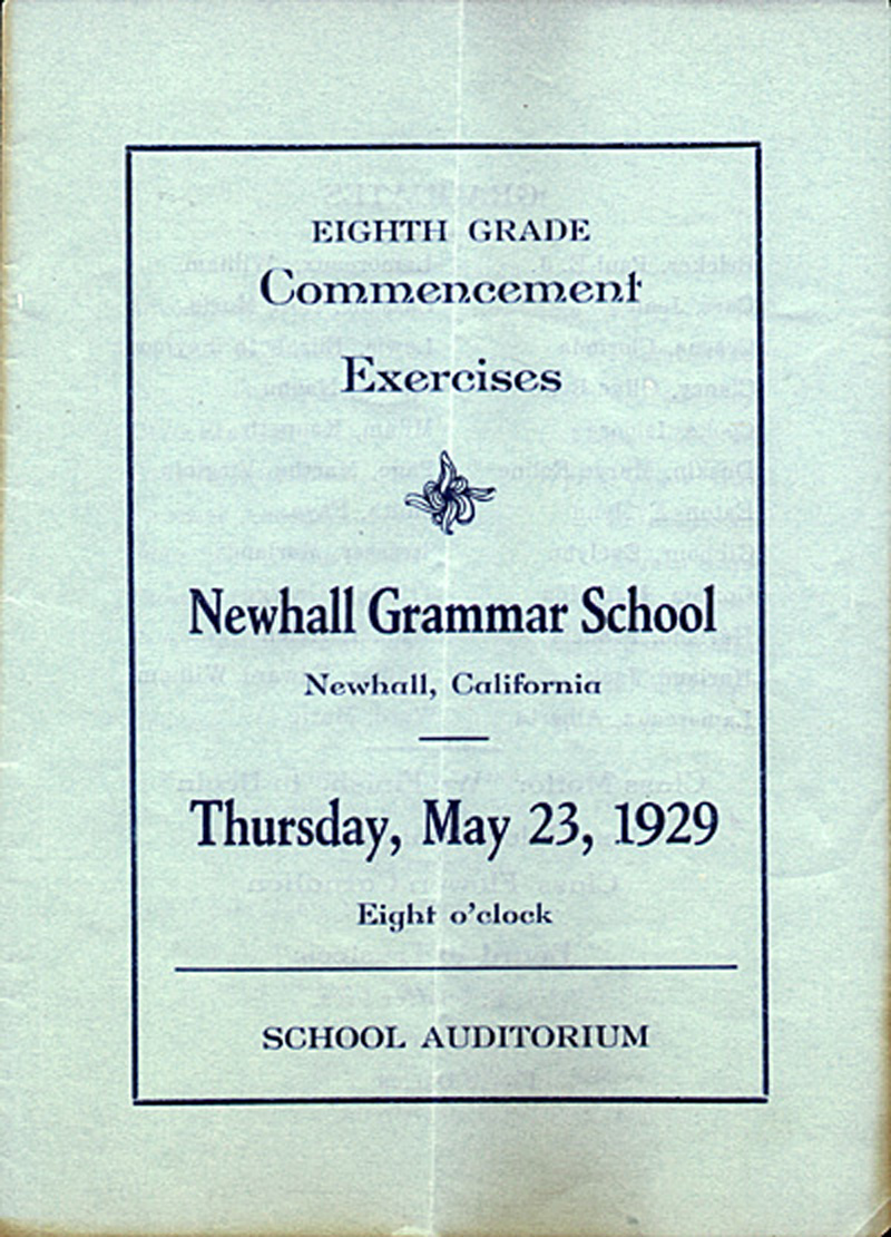 Commencement program for the first graduating class from the fourth Newhall Elementary School building, which opened in 1928 at Walnut and 11th streets. It burned down on Valentine's Day, 1939, and was rebuilt in the same location.