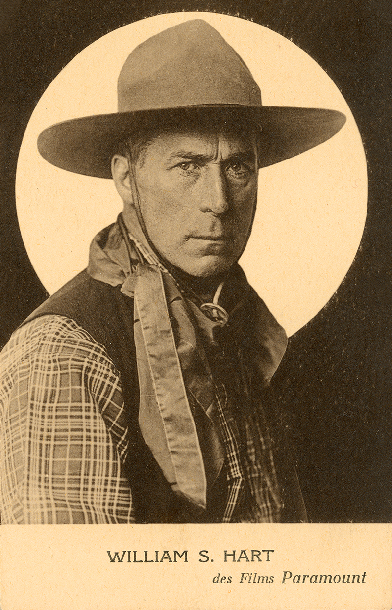 French monotone postcard of William S. Hart. The original movie cowboy, Hart was born