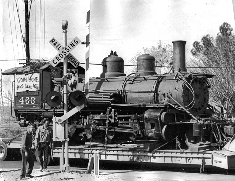 Owl Trucking and Construction Co. of Compton donated its services to bring No. 463 and its tender from Melody Ranch to the SPRR Saugus depot (in Saugus) — normally an $8,000 job (The Signal, March 15, 1972.)