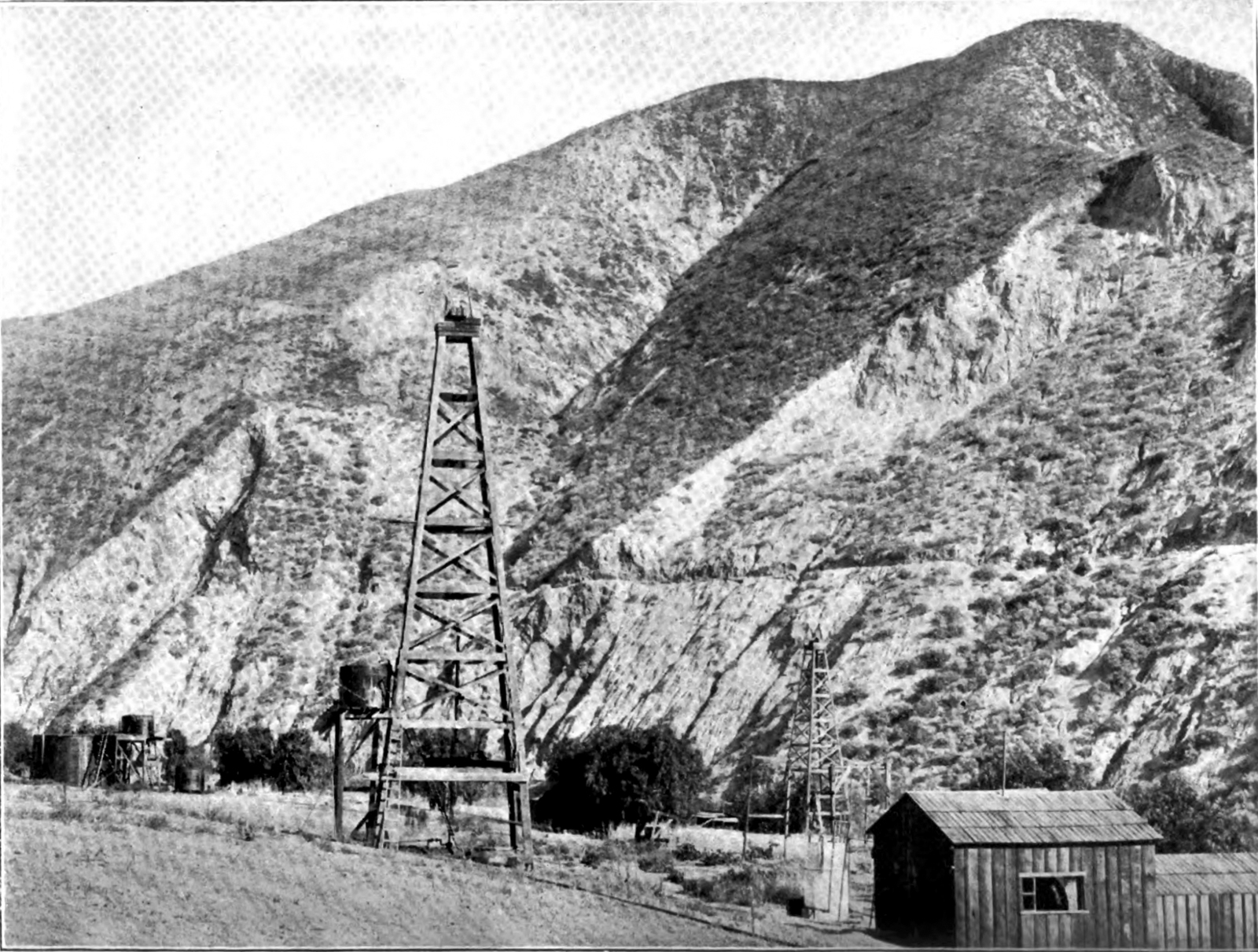 This photograph from 1900 shows Piru's oil derricks — both of them.