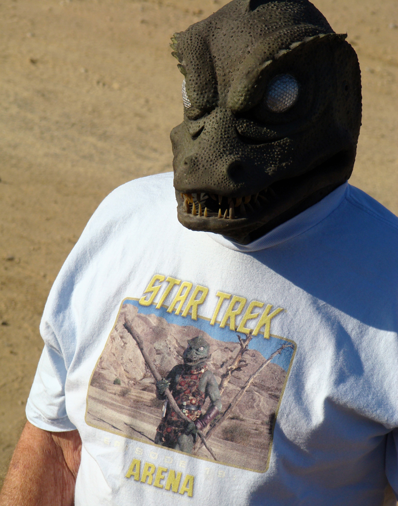 On Aug. 4, 2012, Clark reenacted his fight with Captain Kirk at Vasquez Rocks for an upcoming SCVTV special. The costume he wore in 1966 consisted of three-inch-thick rubber worn over a rubber wetsuit; it was fabricated and owned by Desilu Productions. For the reenactment, Clark used a replica mask made for him in Sweden.
