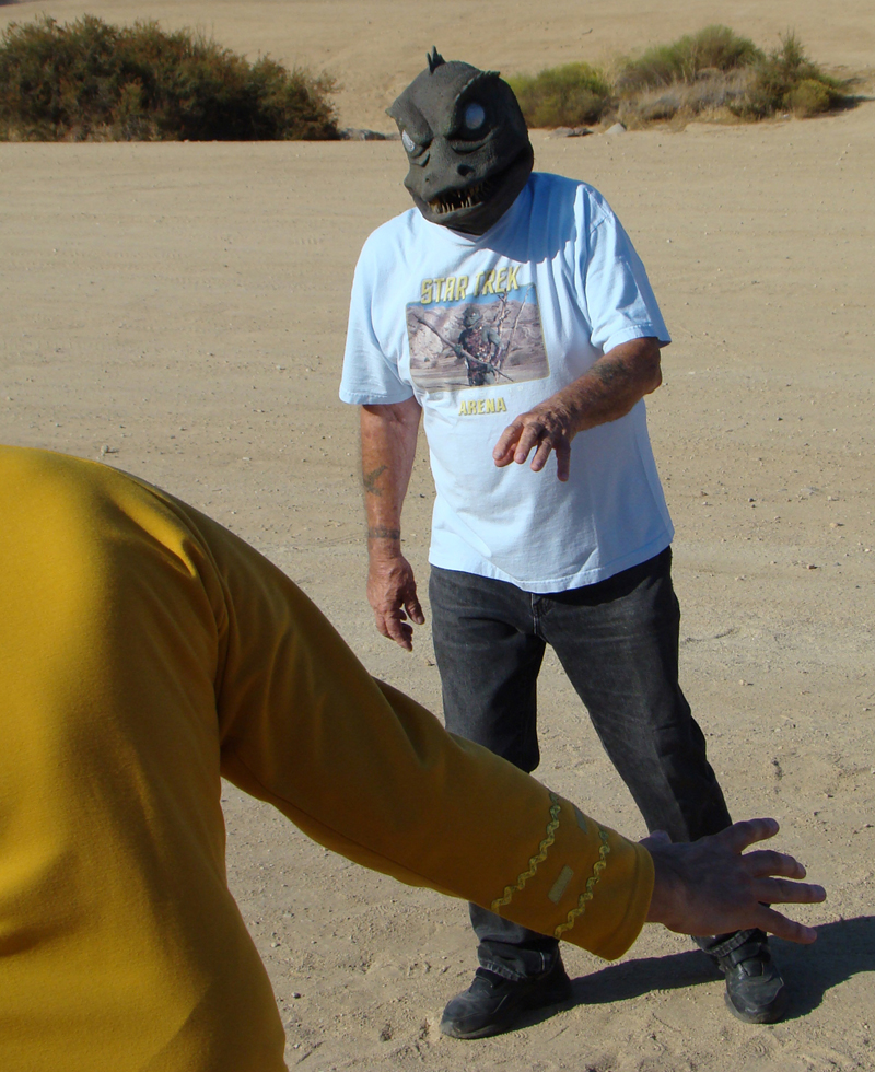 On Aug. 4, 2012, Clark reenacted his fight with Captain Kirk at Vasquez Rocks for an upcoming SCVTV special. The costume he wore in 1966 consisted of three-inch-thick rubber worn over a rubber wetsuit; it was fabricated and owned by Desilu Productions. For the reenactment, Clark used a replica mask made for him in Sweden.