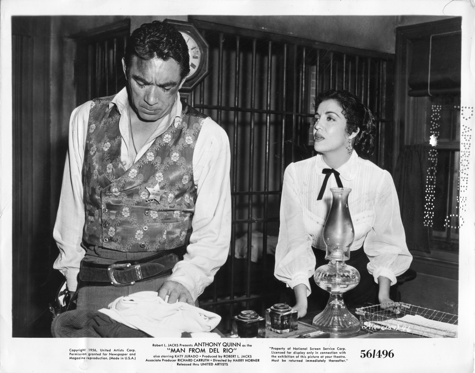 Anthony Quinn and Katy Jurado (shown) star in the Robert L. Jacks picture, "Man From Del Rio" (United