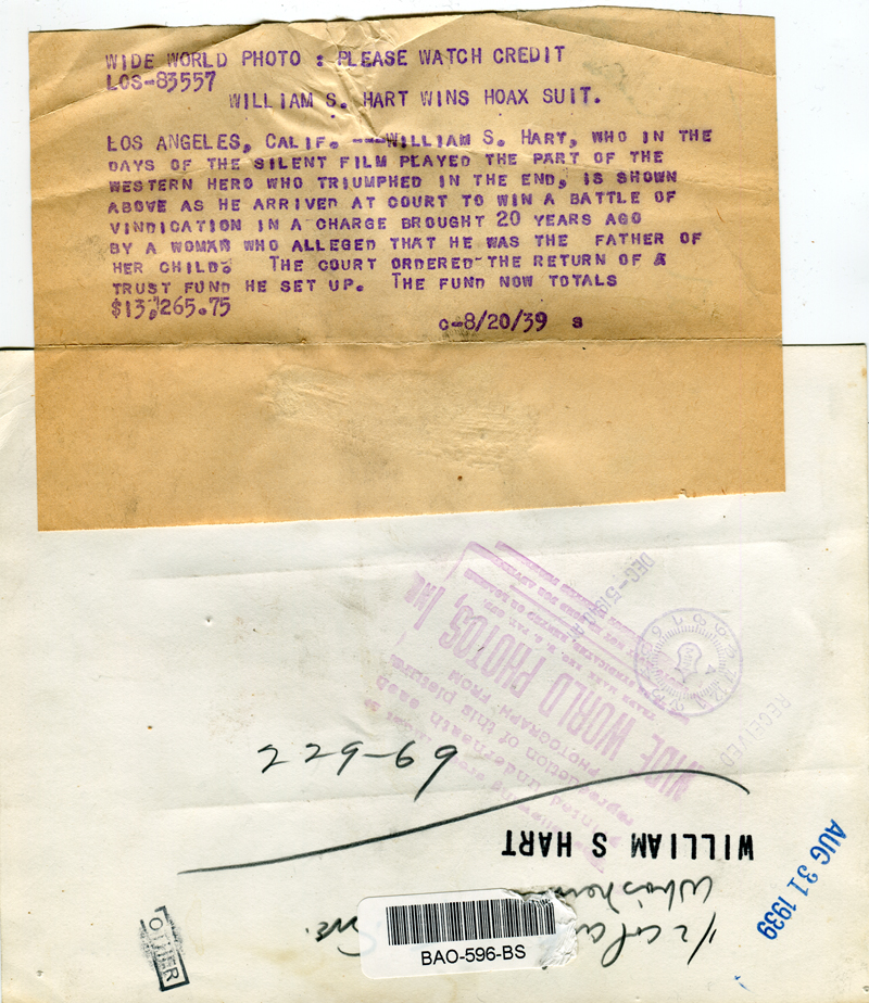 The shutters clicked again on Aug. 20, 1939, when Hart finally quashed a bogus paternity suit that had haunted him for nearly 20 years. It temporarily interrupted his film career in the early 1920s and can't have helped his failing marriage.
