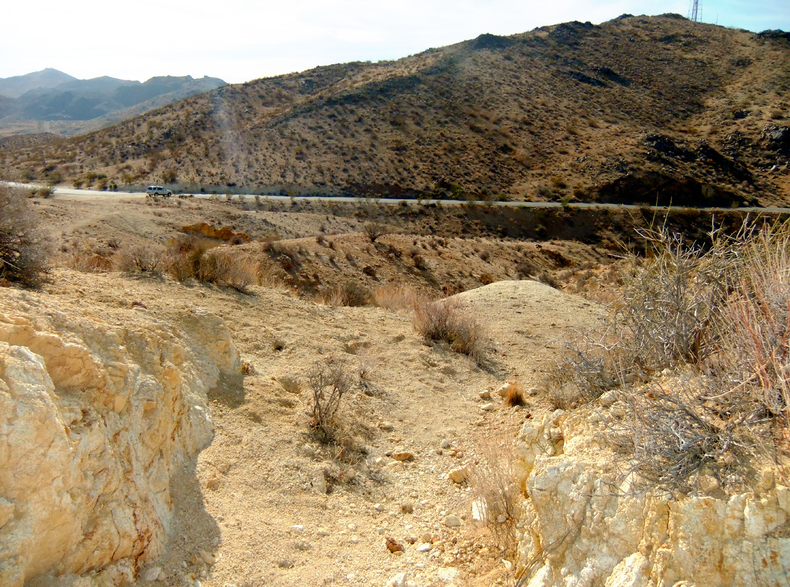 April 13, 2013 Entrance to one of many closed gold mine shafts in the mountains along the Randsburg Loop, southeast of the town of Randsburg. View is looking out in the direction of Randsburg (northwest).