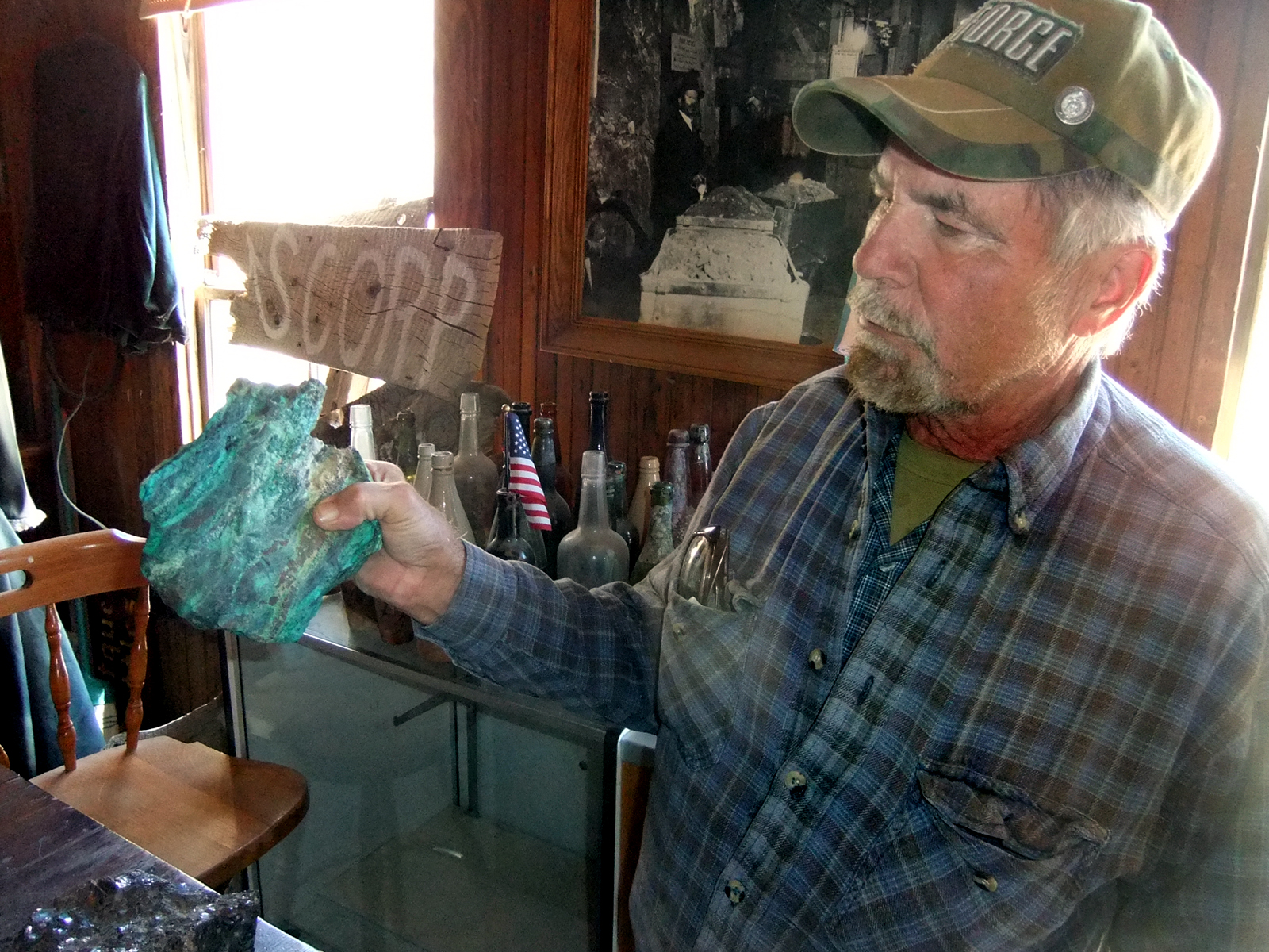 2) Retired schoolteacher Robert Desmarais, the caretaker/historian at Cerro Gordo in April 2013.