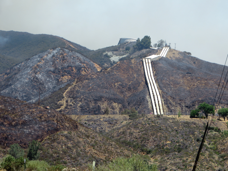 The penstocks at right lead down to San Francisquito Canyon Road, then go underground to the power plant.