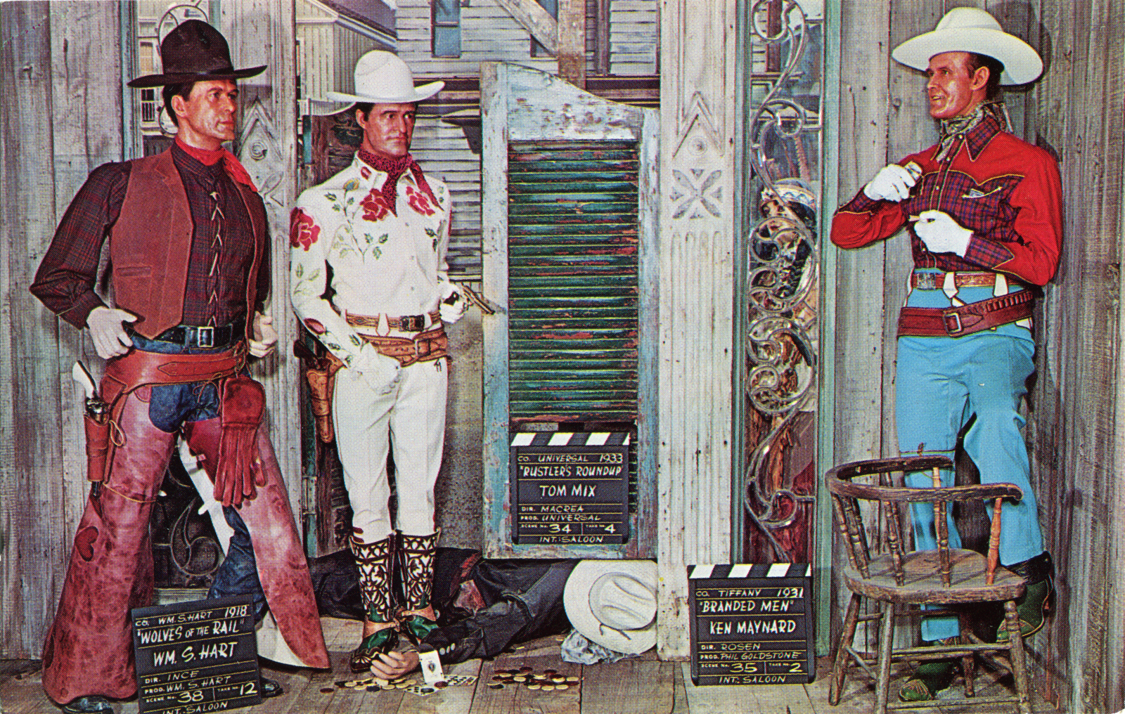 William S. Hart, Tom Mix and Ken Maynard, cast in wax at the Movieland Wax Museum in Buena Park, Calif., in 1962.
