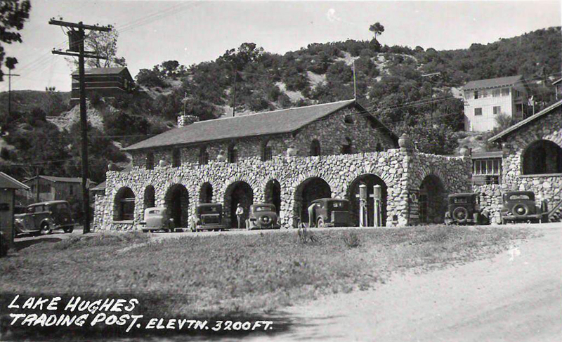 The result was the Lake Hughes Trading Post, the now-famous Rock Inn, completed in 1929. Built of rock quarried in the Lake Hughes area, two stories tall with arched windows and doorways and a large stone fireplace, the Rock Inn was a store, post office and hotel. It also functioned as a bus station called a stage stop, although by the 1920s the valley had auto stages, not horse-drawn stages.