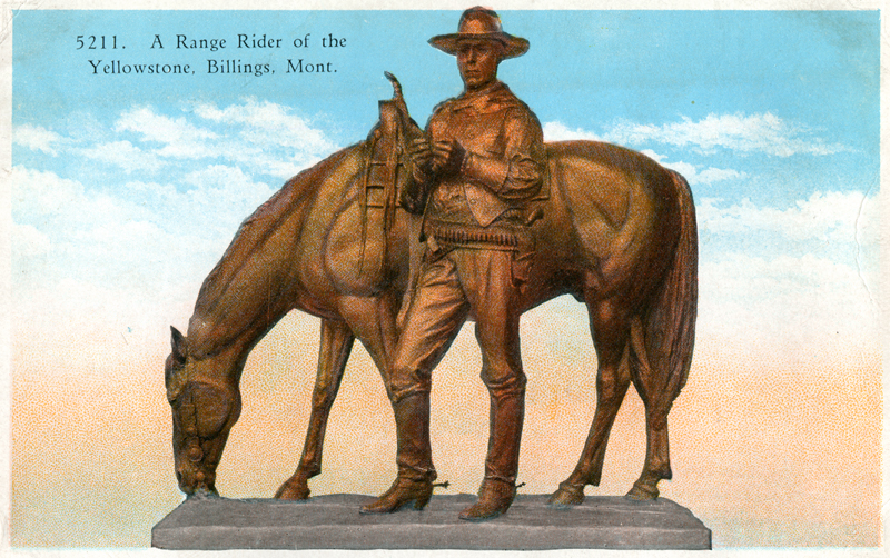 "A Range Rider of the Yellowstone" was made from life and posed by William S. Hart and his horse. It was donated to the city of Billings by Mr. Hart and was dedicated July 4, 1927, the 45th anniversary of the founding of the city.
