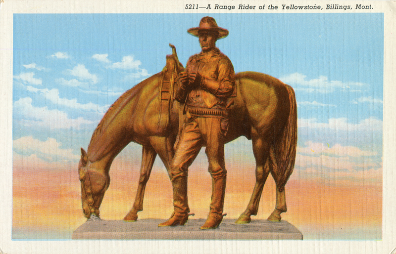 "A Range Rider of the Yellowstone" was made from life and posed by William S. Hart and his horse. It was donated to the city of Billings by Mr. Hart and was dedicated July 4, 1927, the 45th anniversary of the founding of the city.