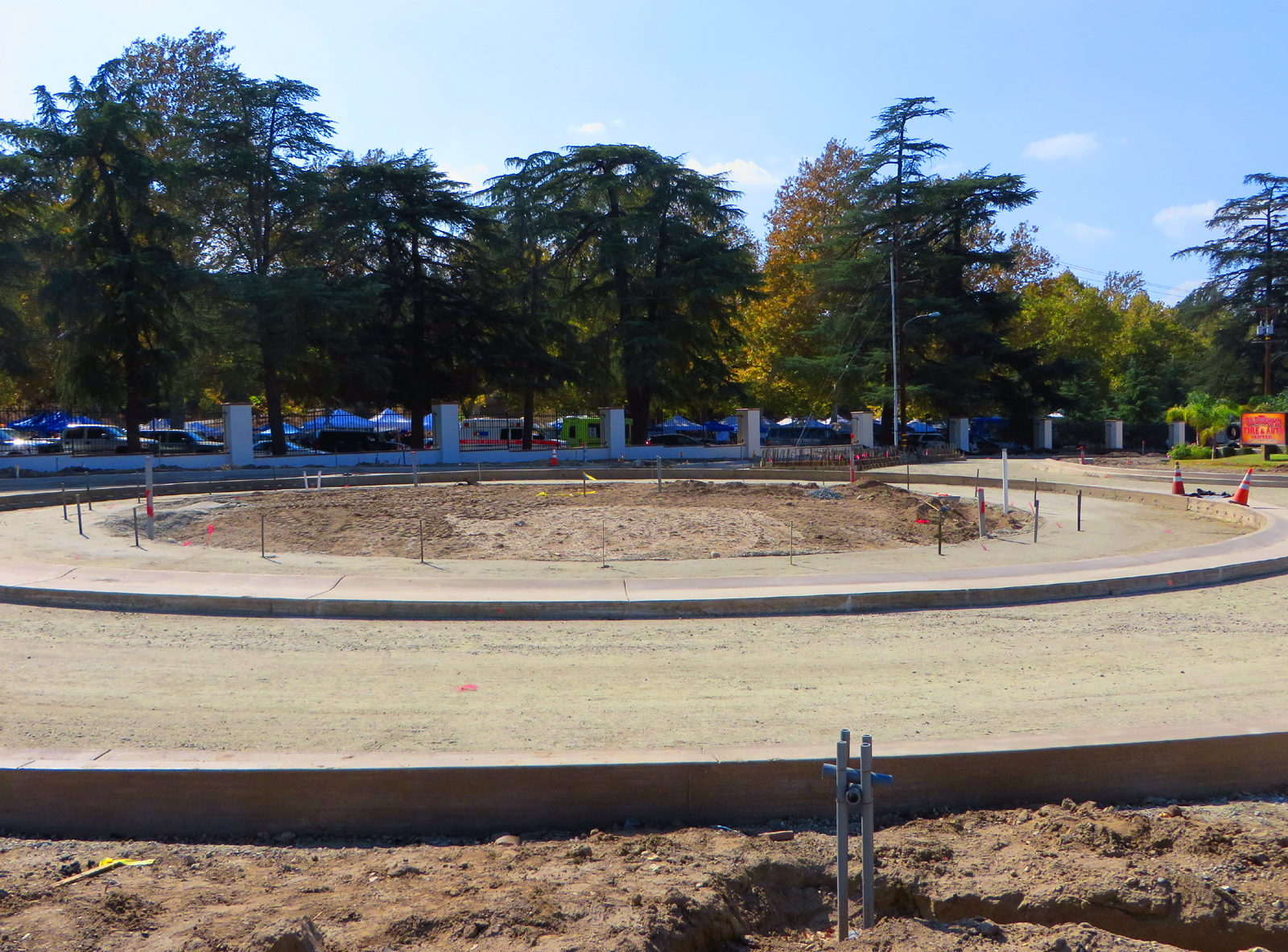 October 13, 2013 — Newhall Roundabout (traffic circle) under construction. Looking west-northwest toward Hart Park.